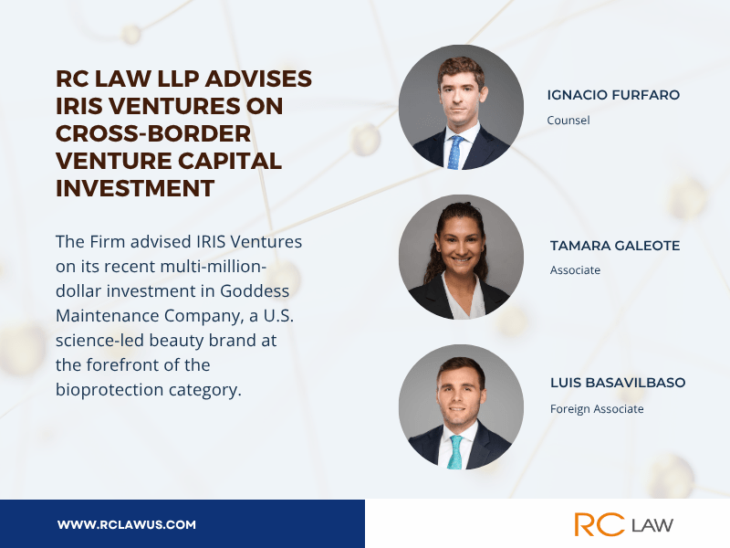 RC Law LLP acted as U.S. legal counsel to IRIS Ventures, a Spanish growth equity firm investing in purpose-driven consumer and lifestyle brands.  The firm advised IRIS on its recent multi-million-dollar investment in Goddess Maintenance Company, a U.S. science-led beauty brand at the forefront of the bioprotection category.